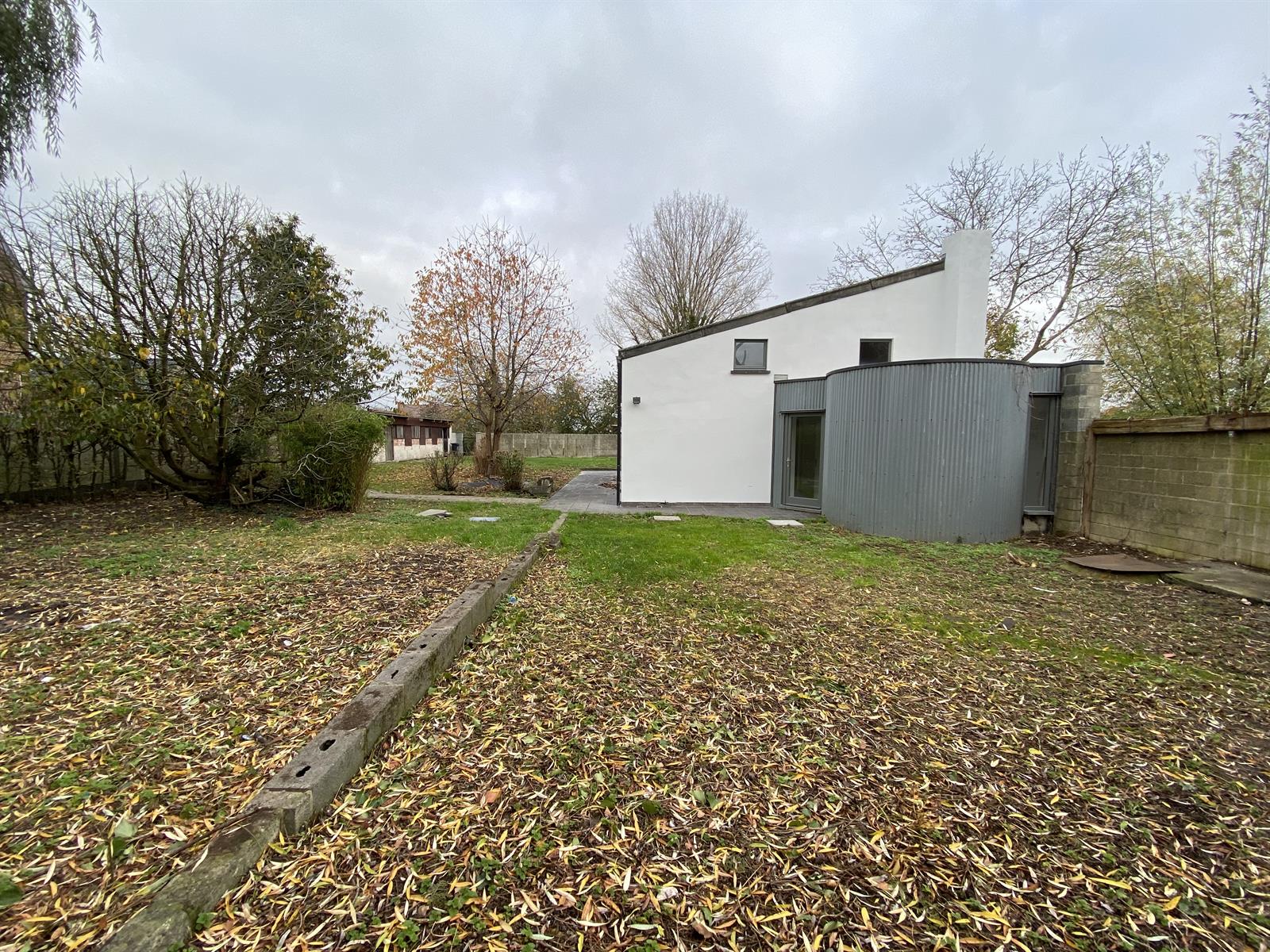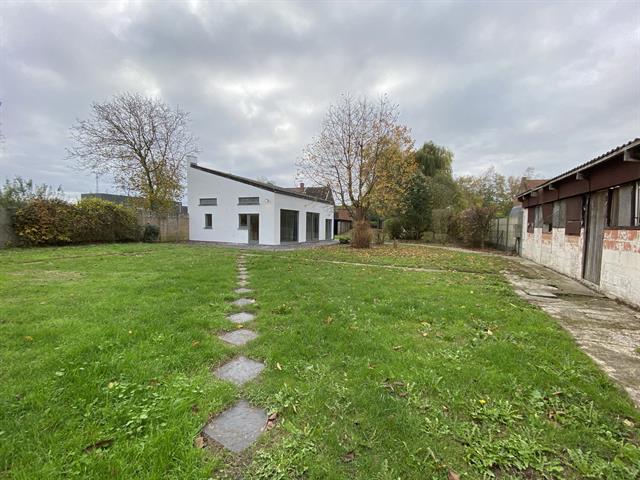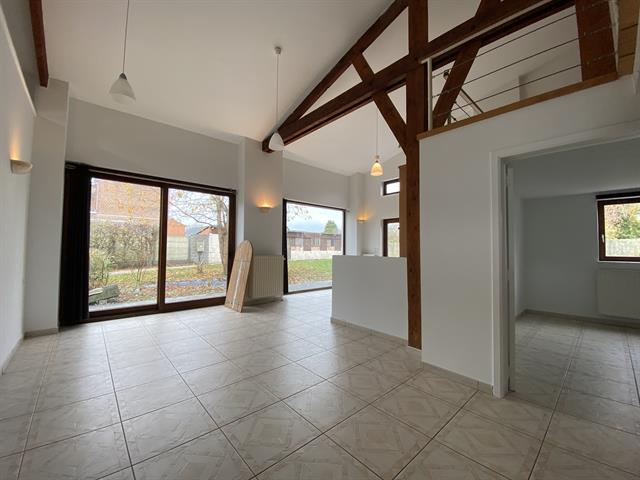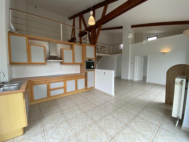 Hall d'entrée, buanderie, bureau, salle de bains, wc, 1 chambre, séjour en open space avec cuisine équipée intégrée.