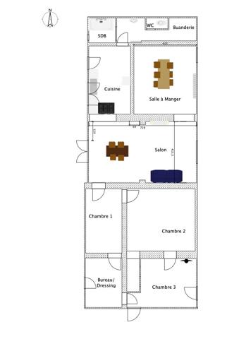 Beau living lumineux, cuisine semi-équipée, 3 chambres, un bureau, sdb, wc et buanderie