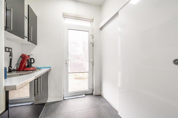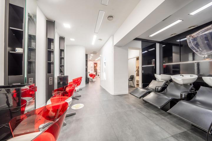 Le rez-de-chaussée abrite un superbe salon de coiffure de près de 110 m², aménagé avec plusieurs espaces dédiés, un bureau, deux coins cuisine ainsi qu’un accès à une terrasse et un jardin, offrant un cadre agréable pour la clientèle et l’équipe.