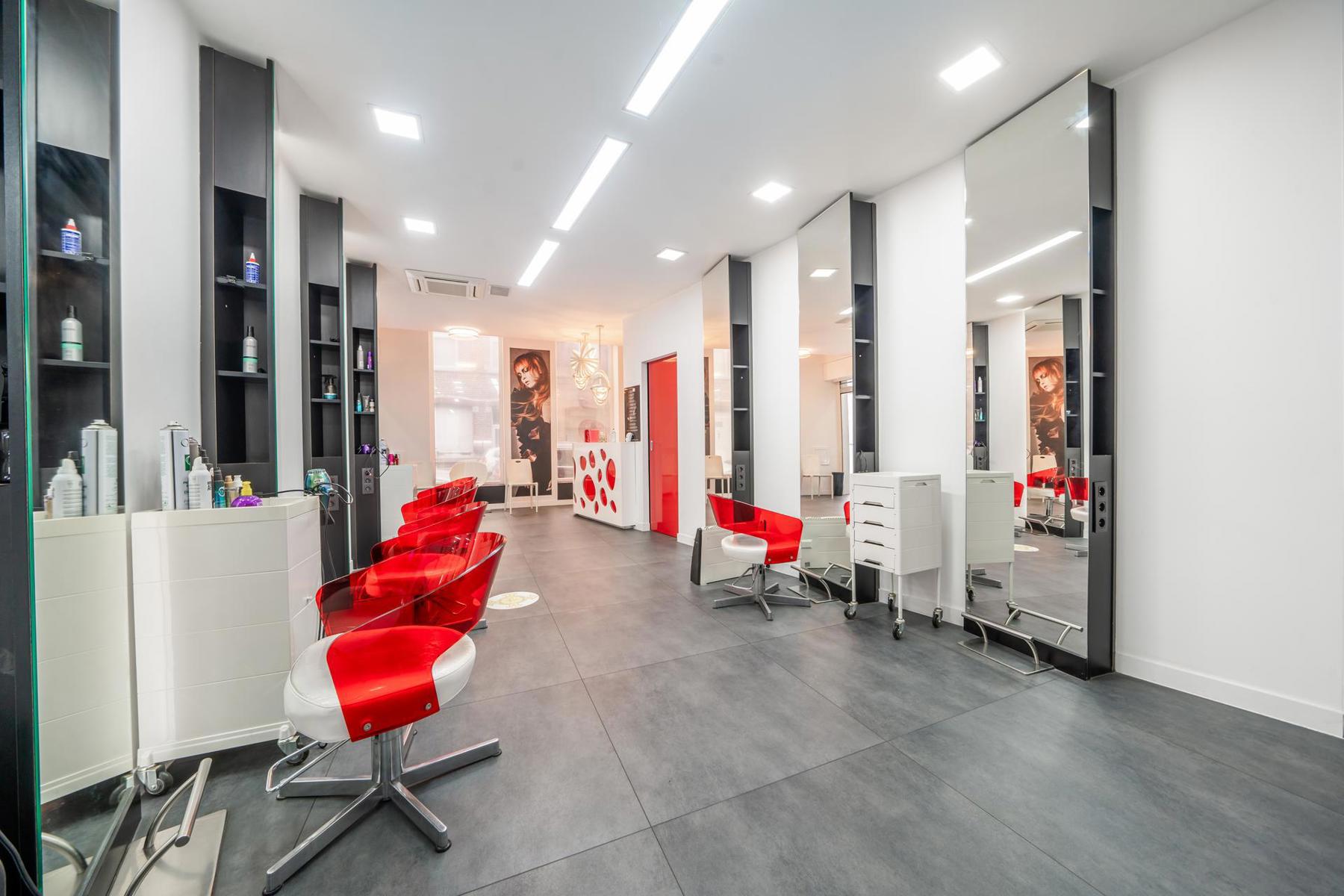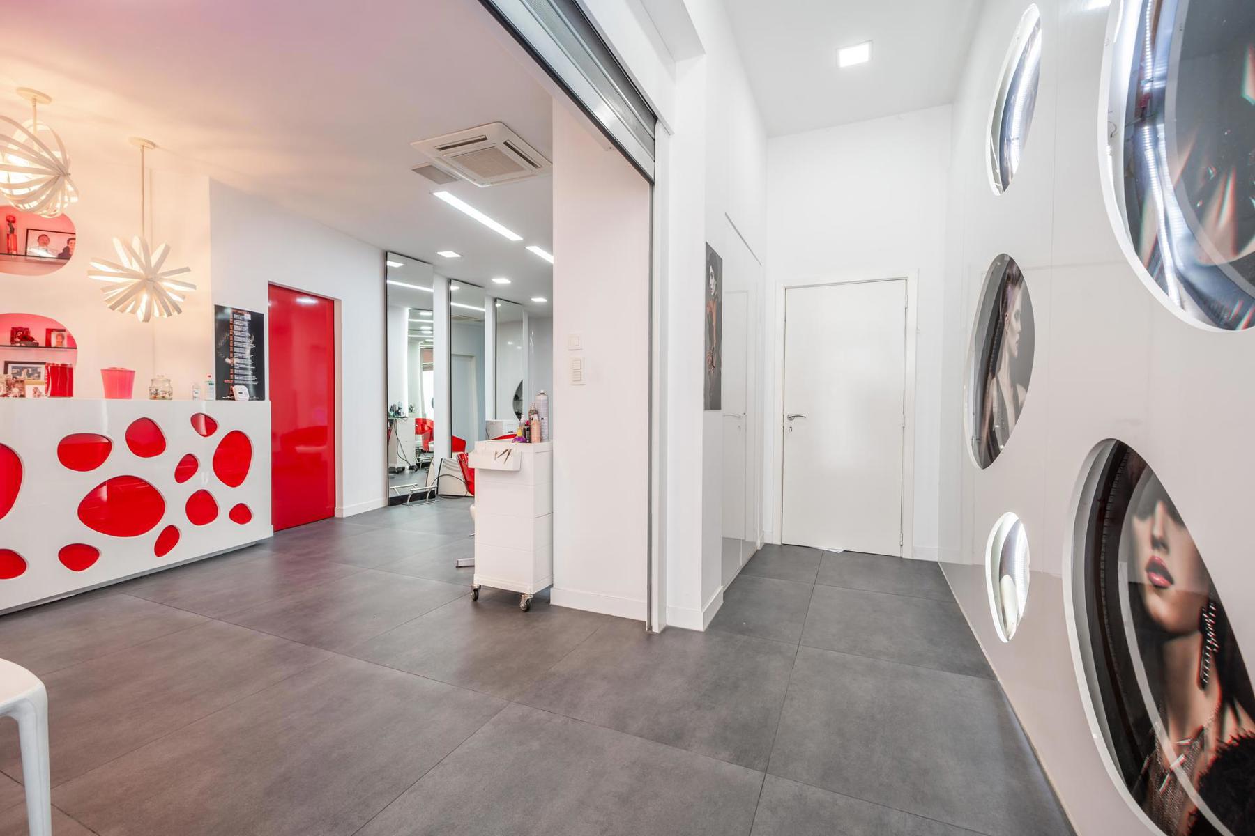 Le rez-de-chaussée abrite un superbe salon de coiffure de près de 110 m², aménagé avec plusieurs espaces dédiés, un bureau, deux coins cuisine ainsi qu’un accès à une terrasse et un jardin, offrant un cadre agréable pour la clientèle et l’équipe.