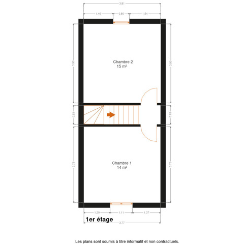 - Chambre 2 : 14.83 m²