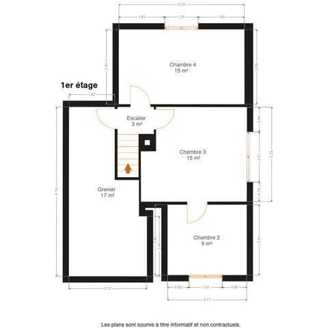 L’étage dessert trois chambres supplémentaires, dont une chambre traversante, idéale comme bureau, dressing ou espace enfant.