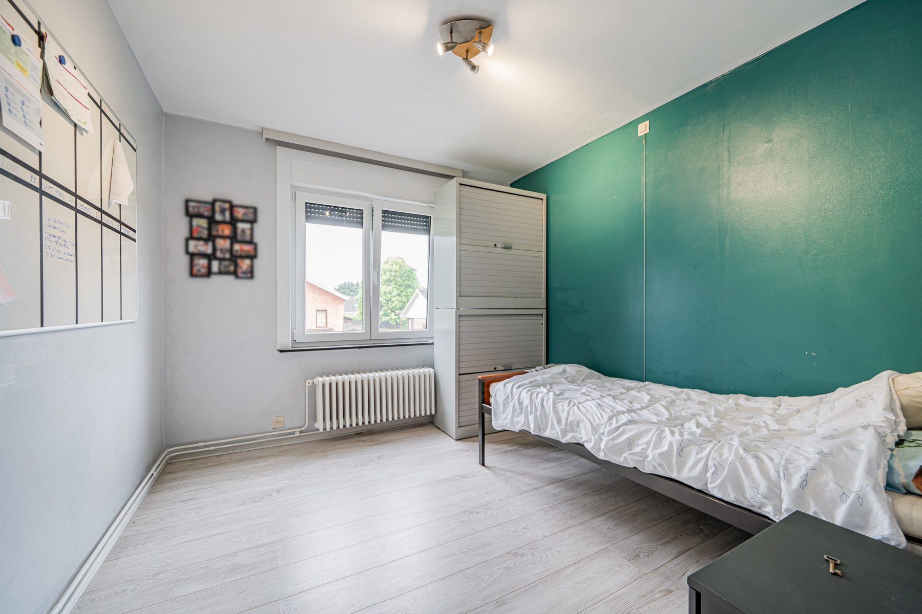 À demi-niveau, vous trouverez une première chambre confortable ainsi qu'une salle de bains fonctionnelle.