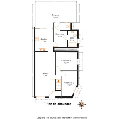Au rez-de-chaussée, elle vous offre un living chaleureux, une cuisine équipée qui sent bon les repas en famille, une buanderie pratique, une salle de bains lumineuse ainsi que deux chambres confortables. Deux caves viennent compléter cet espace, idéales pour vos réserves ou vos passions cachées.
